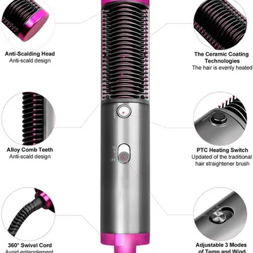 مكواة وفرشاة فرد شعر كهربائية فى وقت واحد.