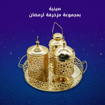 مافيش أجمل من زينة وديكور رمضان في البيوت، فانوس يحسسنا بجو رمضان وبخور يدينا شعور بالروحانيات، كل ده هتلاقيه في مجموعة رمضان المزخرفة مجموعة مكونة من مبخرة و فانوس و برطمان للتمور، مزخرفة بشكل اسلامي هتدي شكل مميز لبيتك *المميزات* الصينية مزخرفة بشكل إسلامي هتدي ديكور مميز لبيتك معاها فانوس بلمبة على شكل شمعة أجواء رمضان مش هتمكل من غير مبخرة تقدري تشغلي عليها بخور بفحم بالريحة المفضلة لك وهتقدمي لضيوفك شكولاته، او تمر من خلال برطمان مزخرف بنفس زخرفة الصينية الصينية بمراية شكلها مميز ومختلف هدية مناسبة جدا لأي حد بتحبه بمناسبة رمضان *الوصف* مجموعة رمضان المزخرفة الخامة: معدن مطلي لون دهبي الابعاد:(قطر الصينية 30سم*ارتفاع 5سم) البرطمان(قطر 10*ارتفاع25) المبخرة:(قطر 11*ارتفاع 25) الفانوس:(قطر10*ارتفاع20) *محتوى العبوة* الصينية فانوس مبخرة برطمان